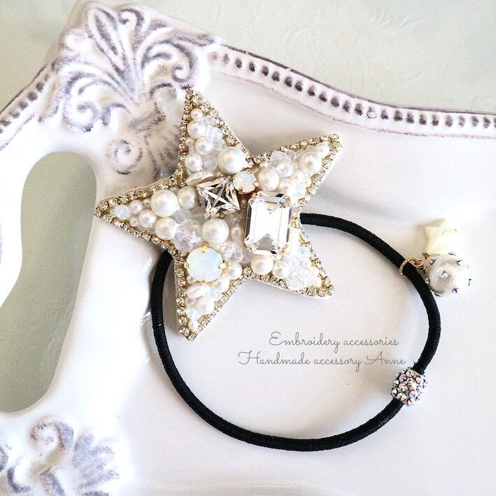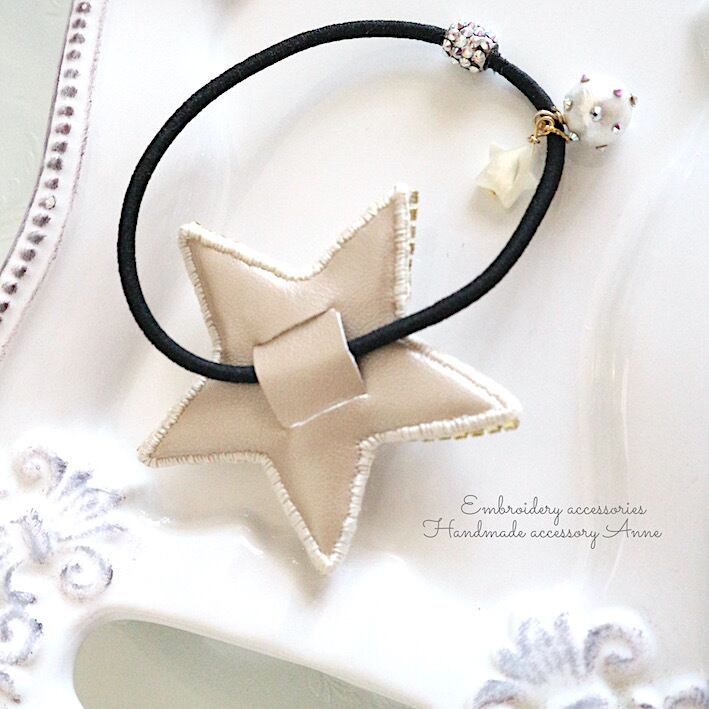 ビーズで刺繍した、星型モチーフのヘアゴムです。